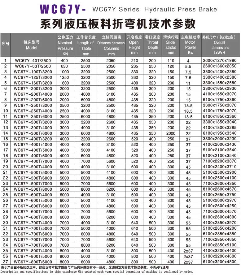 折彎機(WC67Y)性能與特點: